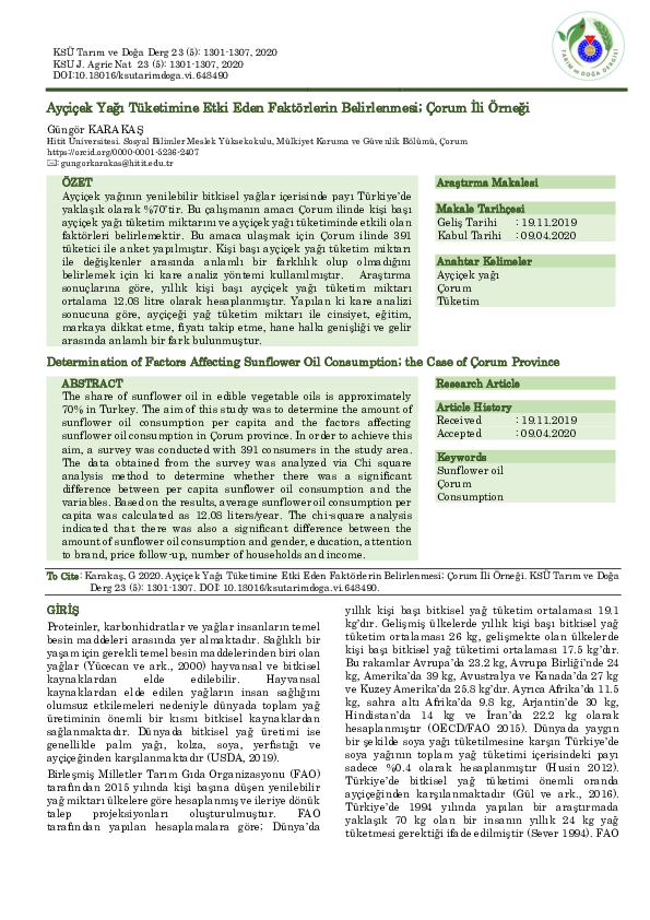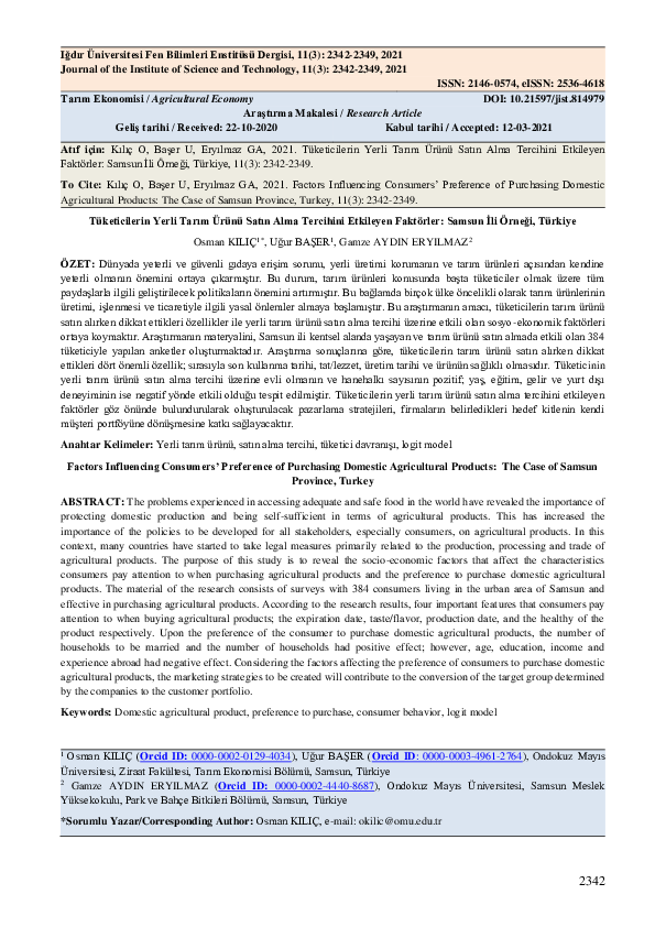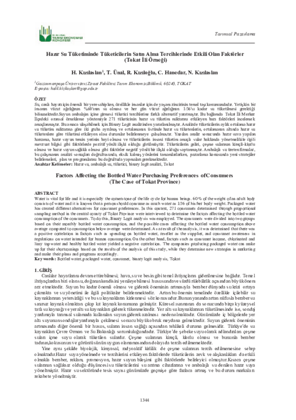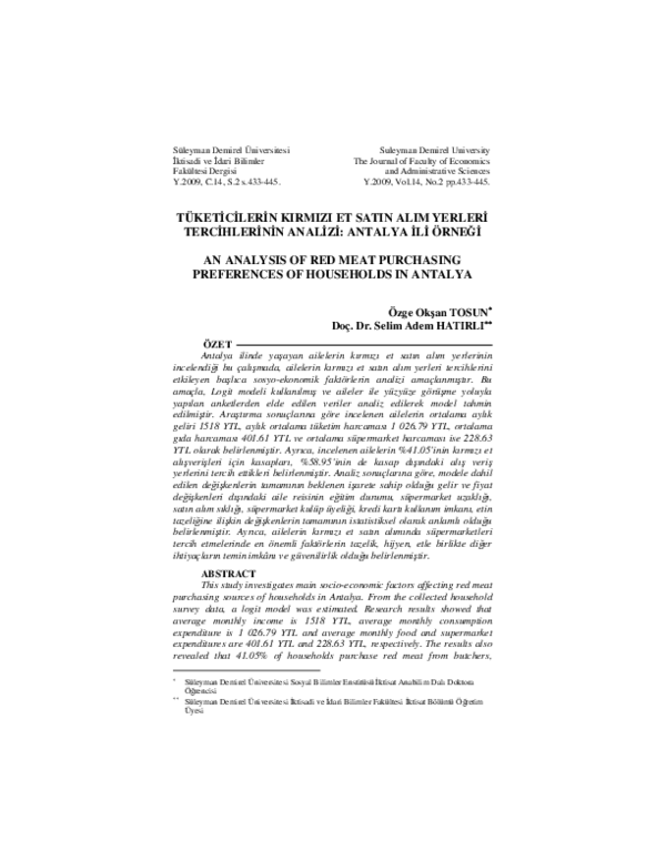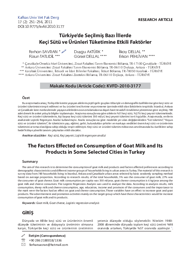 Fujimoto, K. 2003. Application of multinomial and ordinal regressions to the data of japanese female labor market", Kyoritsu Women's College, University of Chicago.Greene, W.H., 1998. LIMDEP, Version 7.0., Econometric Software, Bellfort, NY.Greene, W.H., 2011. Econometric Analysis. Seventh Edition. Prentice Hall, ISBN-10: 0131395386, New Jersey.Gould, B.W. 1998. Factors affecting the timing of purchasing of butter, margarine, and blends: A compet ing goods analysis. American Journal of Agricultural Economics, 80 [4], 793-805.Griffith, G.R., Meilke, K.D. 1979. Relationships among North American fats and oils prices. American Journal of Agricultural Economics, 61 [2], 335-341.Onurlubaş, H., Kızılaslan, H., 2007. Türkiye`de Bitkisel Yağ Sanayindeki Gelişmeler ve Geleceğe Yönelik Beklentiler. Tarımsal Ekonomi Araştırma Enstitüsü yayınları No:157, 59 s., Ankara.Mcfadden, D., 1972. Conditional logit analysis of qualitative choice behaviour. in Zaremb ka, P. [Ed.], Economic Theory and Mathematical Economics, Academic Press, New York, NY.Pazarlıoğlu, M.V., Miran, B., Ucdoğruk, S., Akbay, C. 2007. Using econometric modelling to predict demand for fluid and farm milk: A case study from Turkey. Food Quality and Preference. 18: 416-424Polat F., 2011. Yemeklik Yağ Sektöründe Tüketici Davranışlarını Etkileyen Faktörlerin Analizi. TEPGE, Yayın No: 194 ISBN: 978-975-407-332-4