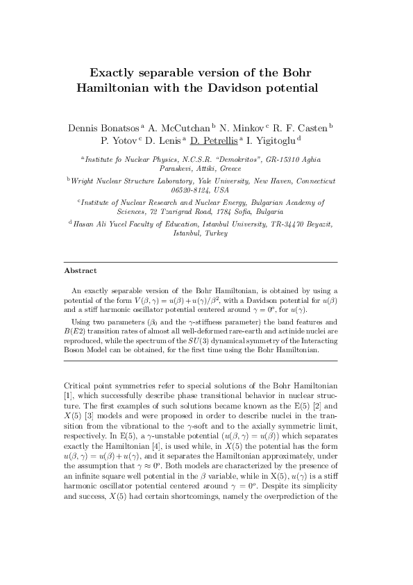 F. Iachello, Phys. Rev. Lett. 85, 3580 (2000).F. Iachello, Phys. Rev. Lett. 87, 052502 (2001).A. Bohr, Mat. Fys. Medd. K. Dan. Vidensk. Selsk. 26, No. 14 (1952).I. Boztosun, D. Bonatsos, and I. Inci, Phys. Rev. C 77, 044302 (2008).L. Fortunato, S. De Baerdemacker, and K. Heyde, Phys. Rev. C 74, 014310 (2006).L. Fortunato, A. Vitturi, J. Phys.G-Nucl. Part. Phys. 30, 5, 627-635, (2004).D. Bonatsos, P. E. Georgoudis, N. Minkov, Phys. Rev. C 88, 034316 (2013).I. Yigitoglu, D. Bonatsos, Phys. Rev. C 83, 014303 (2011).L. Naderi and H. Hassanabadi, Euro. Phys. Jour. Plus 131 5-133 (2016)M. Chabab, A. El Batoul, A. Lahbas, and M. Oulne, Nucl. Phys. A, 953, 158-175 (2016).H.Sobhani, H. Hassanabadi, Mod. Phys. Lett. A 31, 1650152, (2016).D. Bonatsos, D. Lenis, D. Petrellis and P. A. Terziev, Phys. Lett. B 588, (2004).D. Bonatsos, D. Lenis, E.A. McCutchan, D. Petrellis, and I. Yigitoglu, Phys. Lett. B 649, 394-399 (2007).D. Bonatsos, E. A. McCutchan, N. Minkov, R. F. Casten, P. Yotov, D. Lenis, D. Petrellis, and I.Yigitoglu, Phys. Rev. C 76, 064312 (2007).J. Meng, W. Zhang, S. G. Zhou, H. Toki, and L. S. Geng, Eur. Phys. J. A 25, 23, (2005).Z. Q. Sheng and J. Y. Guo, Mod. Phys. Lett. A 20, 2711 (2005).R. Fossion, D. Bonatsos, and G. A. Lalazissis, Phys. Rev. C 73, 044310 (2006).D. Bonatsos, D. Lenis, N. Minkov, P. P. Raychev, and P. A. Terziev, Phys. Rev. C 69, 014302 (2004).D. Bonatsos, D. Lenis, N. Minkov, P. P. Raychev, and P. A. Terziev, Phys. Rev. C 69, 044316 (2004).P. M. Davidson, Proc. R. Soc. London, Ser. A 135, 459 (1932).D. Bonatsos, D. Lenis, N. Minkov, D. Petrellis, P. P. Raychev, and P. A. Terziev, Phys. Lett. B 584,40(2004).D. Bonatsos, D. Lenis, N. Minkov, D. Petrellis, P. P. Raychev, and P. A. Terziev, Phys. Rev. C 70, 024305 (2004).I. Yigitoglu and D. Bonatsos, Phys. Rev. C 83, 014303 (2011).A.S. Davydov, A.A. Chaban, Nucl. Phys. 20 (1960) 499.D. Bonatsos, D. Lenis, D. Petrellis, P.A. Terziev, and I. Yigitoglu, Phys. Lett. B 632 238 (2006).M. Alimohammadi, H. Hassanabadi, Nucl. Phys. A, 957, 439-449 (2017).M. Chabab, A. El Batoul, A. Lahbas, and M. Oulne, Phy. Lett. B 758, 212-218 (2016).P. Buganu and R. Budaca, Bulg. J. Phys., 42, 4, 513-522 (2015).A.F. Nikiforov, V.B. Uvarov, Special Functions of Mathematical Physics, Birkhaüser Basel, (1988).