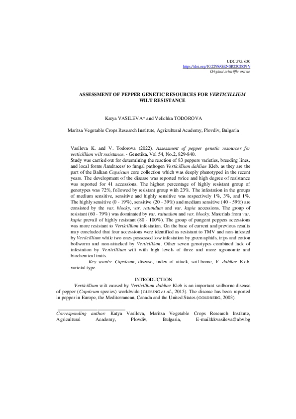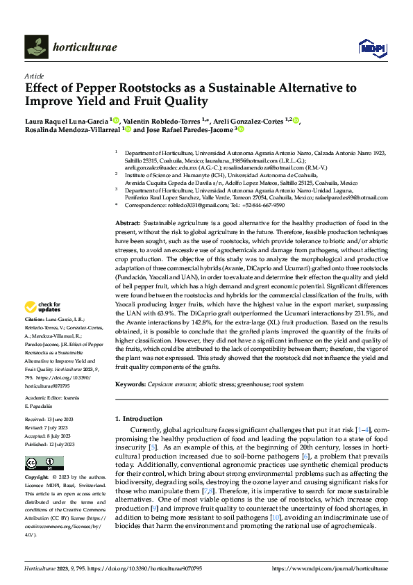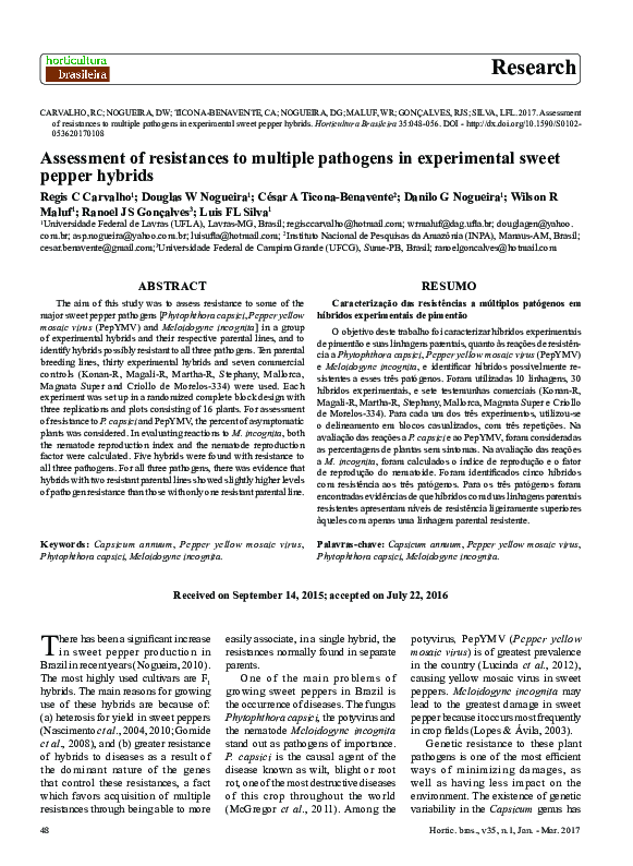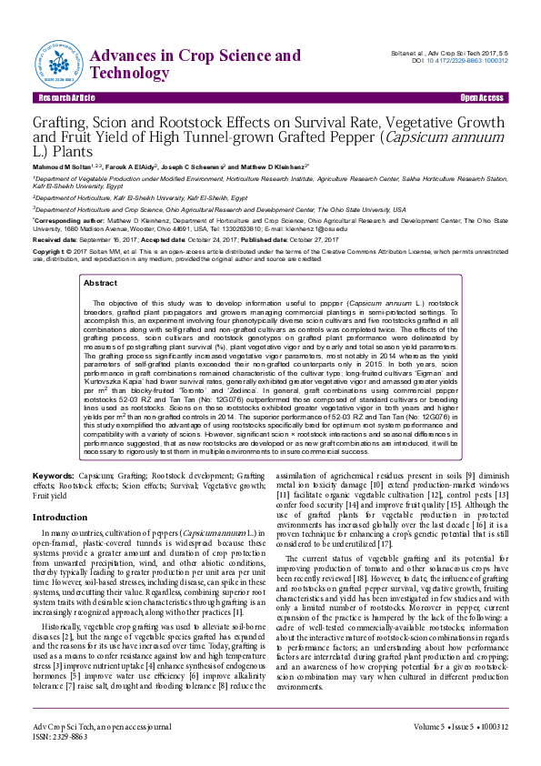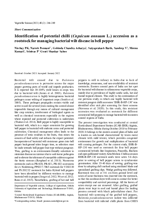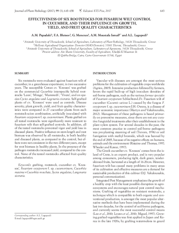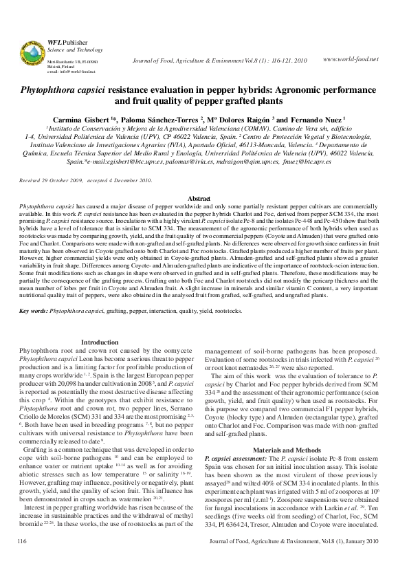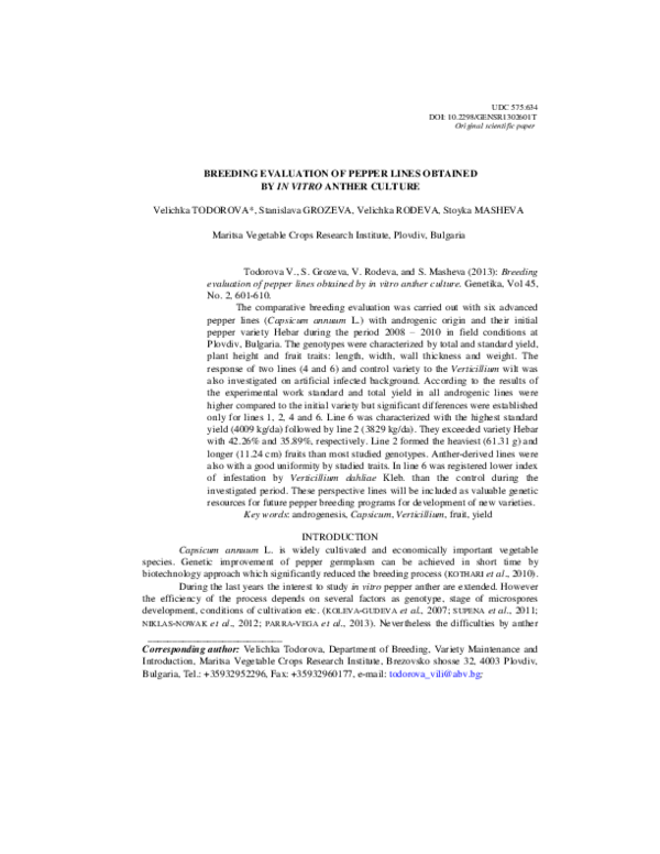AHN, S.J., Y.J. IM, G.C. CHING, B.H. CHO and S.R. SUH 1999: Physiological responses of grafted-cucumber leaves and rootstock roots affected by low temperature. Sci. Hort. 81, 397-408.ALTINOK, H.H. 2005: First Report of Fusarium wilt of eggplant caused by Fusarium oxysporium f. sp. melongenae in Turkey. Plant Path. 54, 577p.ANONYMOUS, 2008: Pepper production in Turkey. http:// www.fao.org/corp/statistics/en.ATTIA, M.F., A.M. ARAFAT, M.A. MOUSTAFA and M.A. MOHAMED 2003: Pepper grafting, a method of controlling soilborne diseases and enhancement of fruit yield: 1. Improvement of pepper resistance to Fusarium wilt. Egypt. J. Phyto- pathol. 31, 151-165.BARKER, K.R. 1985: Nematode extractions and bioassays. In: BARKER, K.R., C.C. CARTER and J.N. SASSER (eds.): An advanced treatise on Meloidogyne, methodology, Vol. II. North Carolina State University Graphics, Raleigh, pp. 19-35.BHAT, R.G., R.F. SMITH, S.T. KOIKE, B.M. WU and K.V. SUBBARAO 2003: Characterization of Verticillium dahliae isolates and wilt epidemics of pepper. Plant Dis. 87, 789-797.BLETSOS, F., C.C. THANASSOULOPOULOS and D.G. ROUPAKIAS 2003: Effect of grafting on growth, yield and Verticillium wilt of eggplant. HortSci. 183, 186-186.BURELLE, N.K., E.N. ROSSKOPF and M.G. BAUSHER 2009: Grafting for control of Meloidogyne spp. in fruiting vegetables. Organiz. Nematologists Trop. Am. 39, 121-123.CHARU, J. and P.C. TRIVEDI 1998: Nematicidal activity of certain plants against root-knot nematode, Meloidogyne incognita infecting chickpea, Cicer arietinum. Ann. Plant Prot. Sci. 5, 171-174.COLLA, G., Y. ROUPHAEL, M. CARDARELLI, O. TEMPERINI, E. REA, A. SALERNO and F. PIERANDREI 2008: Influence of grafting on yield and fruit quality of pepper (Capsicum annuum L.) grown under greenhouse conditions. Acta Hort. 782, 359- 364.DAVIS, A.R., P.M. PERKINS VEAZIE, R. HASSELL, A. LEVI, S.R. KING and X. ZHANG 2008: Grafting effects on vegetable quality. HortSci. 43, 1670-1672.FICCADENTI, N., S. SESTILI, S. ANNIBALI, G. CAMPANELLI, A. BELISARIO, M. MACCARONI and L. CORAZZA 2002: Resistance to Fusarium oxysporium f. sp. melonis race 1, 2 in muskmelon lines Nad-1 and Nad-2. Plant Dis. 86, 897-900.HIBAR, K., M. DAAMI-REMADI, M. JABNOUN-KHIAREDDINE and M. EL MAHJOUB 2006: Control of Fusarium crown and root rot of tomato, caused by Fusarium oxysporium f. sp. radi- cis-lycopersici by grafting onto resistant rootstocks. Plant Path. J. 5, 161-165.IOANNOUS, N. 2001: Integrating soil solarization with grafting on resistant rootstocks for management of soil-borne path- ogens of eggplant. J. Hort. Sci. Biotech. 76, 396-401.JANG, Y., Y. CHO, H. RHEE and Y. UM 2008: Effects of rootstocks and night temperature on the growth and yield of grafted pepper (Capsicum annuum L.). Hort. Environ. Biotech. 49, 63-71.KHAH, E.M., E. KAKAVA, A. MAVROMATIS, D. CHACHALIS and C. GOULAS 2006: Effect of grafting on growth and yield of tomato (Lycopersicon esculentum Mill.) in greenhouse and open-field. J. Appl. Hort. 8, 3-7.KING, S.R., A.R. DAVIS, W. LIU and A. LEVI 2008: Grafting for disease resistance. HortSci. 43, 1673-1675.KINLOCH, R.A. 1990: Screening for resistance to root nema- todes. In STAR, J.L. (ed.): Methods for evaluating plant spe- cies for resistance to plant-parasitic nematodes. Hyattsville, MD, USA, Society of Nematologists, 24-32.KOIKE, S.T., K.V. SUBBARAO, R.M. DAVIS, T.R. GORDON and J.C. HUBBARD 1994: Verticillium wilt of cauliflower in California. Plant Dis. 78, 1116-1121.LEE, J.M. 1994: Cultivation of grafted vegetables I. Develop- ment of grafting robots in Japan. HortSci. 29, 235-239.LEONARDI, C. and D. ROMANO 2004: Recent issues on vegetable grafting. Acta Hort. 631, 163-174.LEONARDI, C. and F. GIUFFRIDA 2006: Variation of plant growth and macronutrient uptake in grafted tomatoes and egg- plants on three different rootstocks. Eur. J. Hort. Sci., 71, 97-101.ODA, M. 1999: Grafting of vegetables to improve greenhouse production. Food and Fertilizer Technology Center. Exten- sion Bulletin 480, 1-11.OKA, Y., R. OFFENBACH and S. PIVONIA 2004: Pepper rootstock graft compatibility and response to Meloidogyne javanica and M. incognita. J. Nematology 36, 137-141.RIVARD, C.L. and F.J. LOUWS 2008: Grafting to manage soil- borne diseases in heirloom tomato production. HortSci. 43, 2104-2111.RIVERO, R.M., J.M. RUIZ and L. ROMERO 2003: Role of grafting in horticultural plants under stress conditions. J. Food Agric. Environment. 1, 70-74.ROS, C., M.M. GUERRERO, M.A. MARTINEZ, N. BARCELO, M.C. MARTINEZ, I. RODRIGUEZ, A. LACASA, P. GUIRAO and A. BELLO 2005: Resistant sweet pepper rootstocks integrated into the management of soilborne pathogens in greenhouse. Acta Hort. 698, 305-310.SOGUT, M. and I.H. ELEKCIOGLU 2007: Methyl bromide alter- natives for controlling Meloidogyne incognita in pepper varieties in the Eastern Mediterranean region of Turkey. Turk. J. Agric. For., 31, 31-40.TRAKA-MAVRONA, E., M. KOUTSIKA-SOTIRIOU and T. PRITSA 2000: Response of squash (Cucurbita spp.) as rootstock for melon (Cucumis melo L.). Sci. Hort. 83, 353-362.